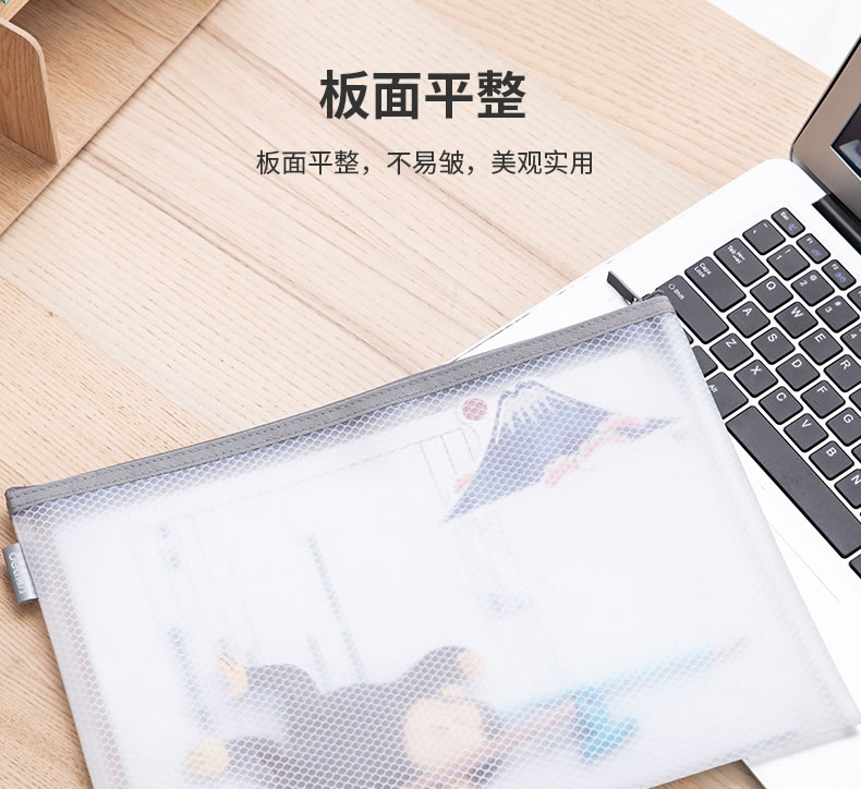 deli得力A4透明网格拉链袋63454 EVA环保材质防水资料袋文件袋票据袋收纳袋
