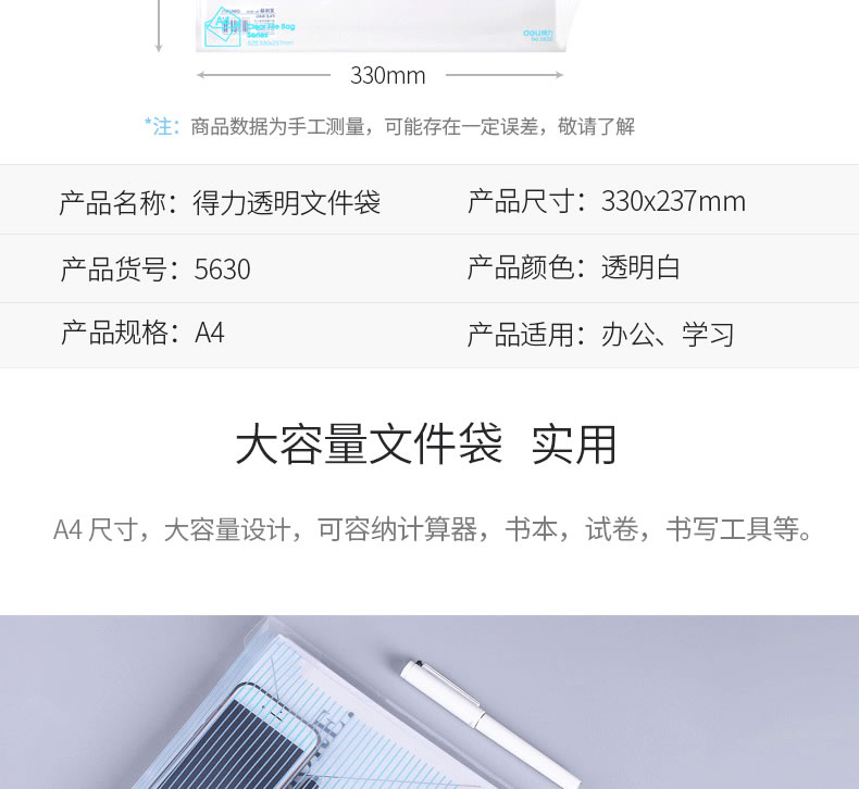 【得力5630档案袋】deli得力办公文具文具佳和旗舰店出售各种档案袋,deli得力A4透明条纹档案袋 5630按扣文件袋资料袋票据袋 10个装 ,档案袋规格样式颜色齐全欢迎订购。咨询电话:1352-280-4330!