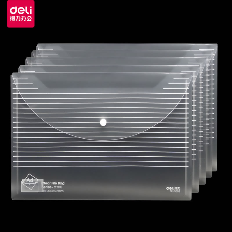 【得力5502档案袋】deli得力办公文具文具佳和旗舰店出售各种档案袋,deli得力A4透明条纹档案袋 5502按扣文件袋资料袋票据袋 10个装 ,档案袋规格样式颜色齐全欢迎订购。咨询电话:1352-280-4330!