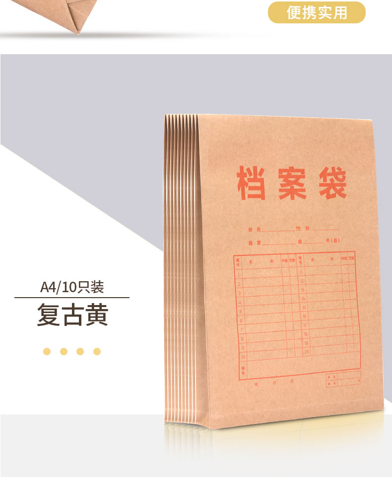 deli得力牛皮纸档案袋40mm 8384 A4牛皮纸档案袋文件袋资料袋 10个装