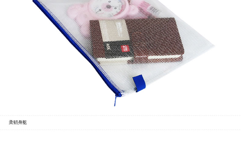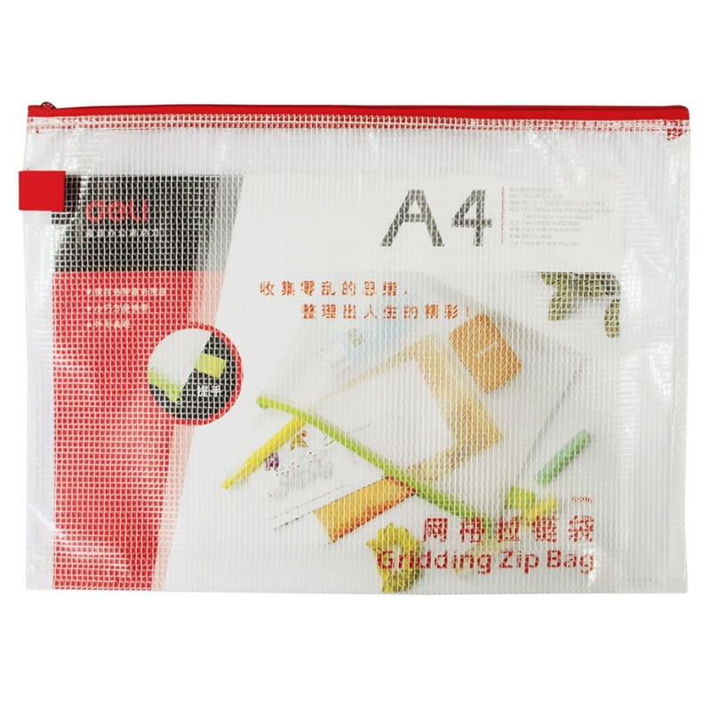 备注:deli得力5596 、A4透明网纱拉链袋 、资料袋、文件袋、票据袋、拉边袋。
