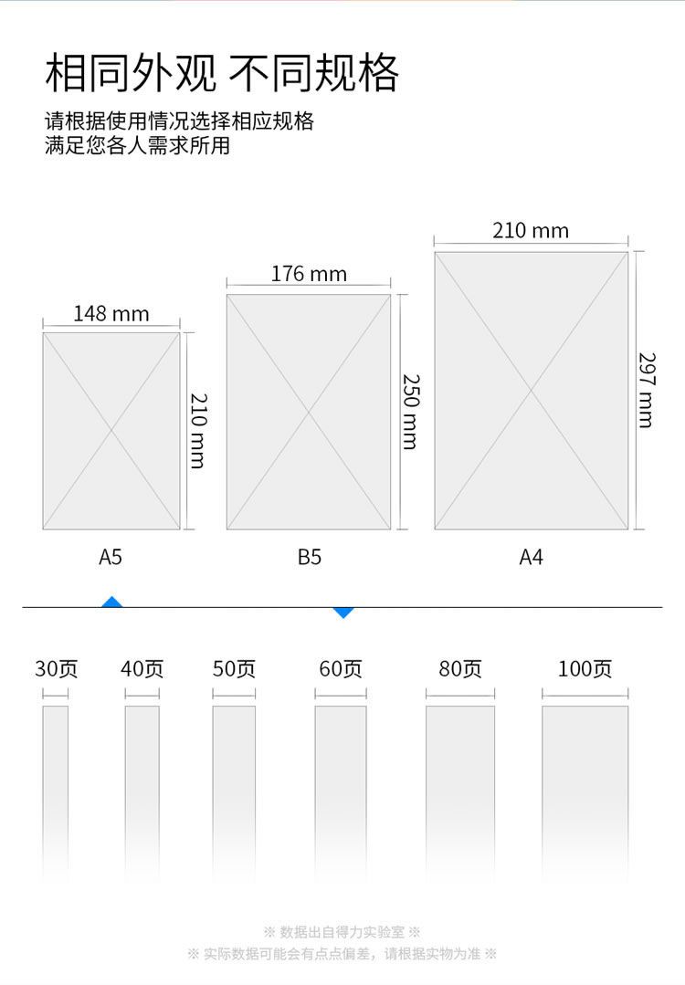 2、双纸材质的结合,封面白卡纸,内心双胶纸。精选的材料和工艺,完成书写纸张不易渗透,可双面书写。